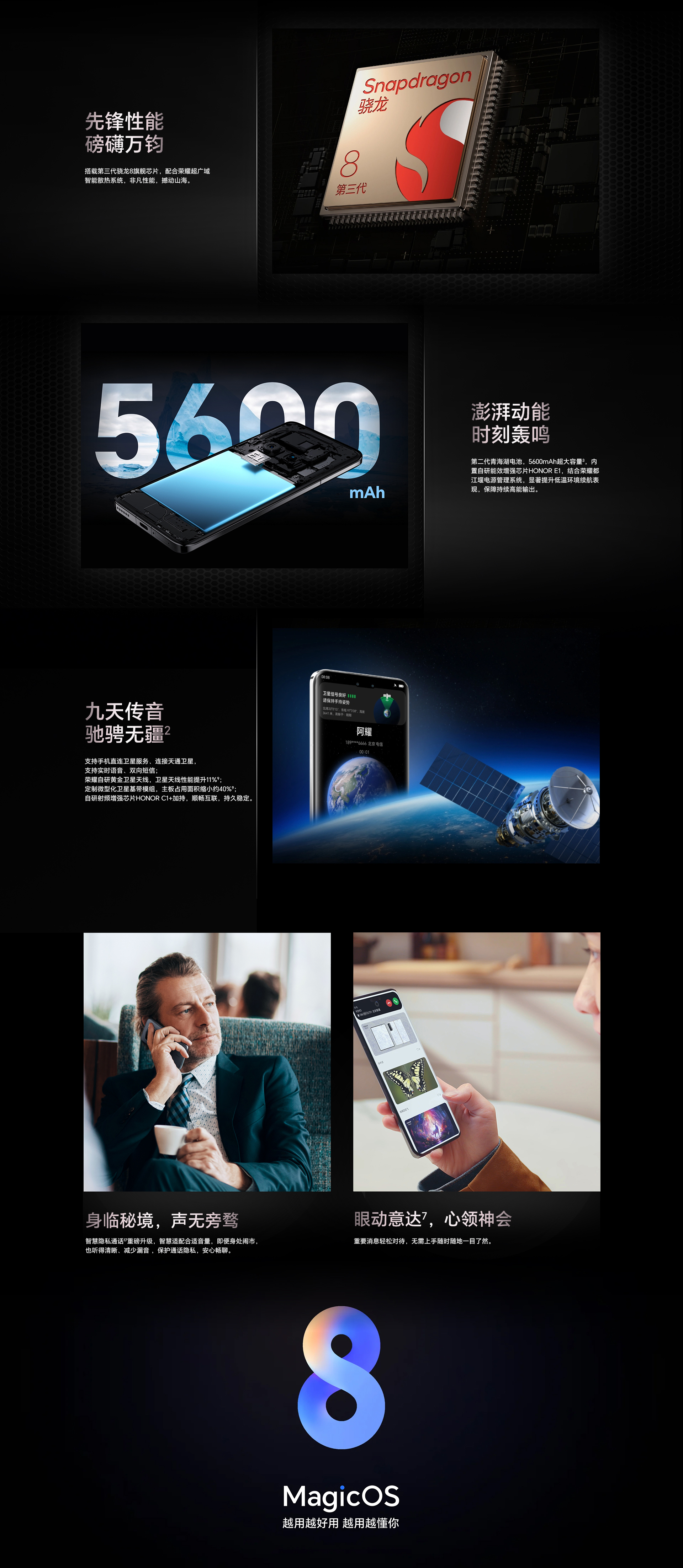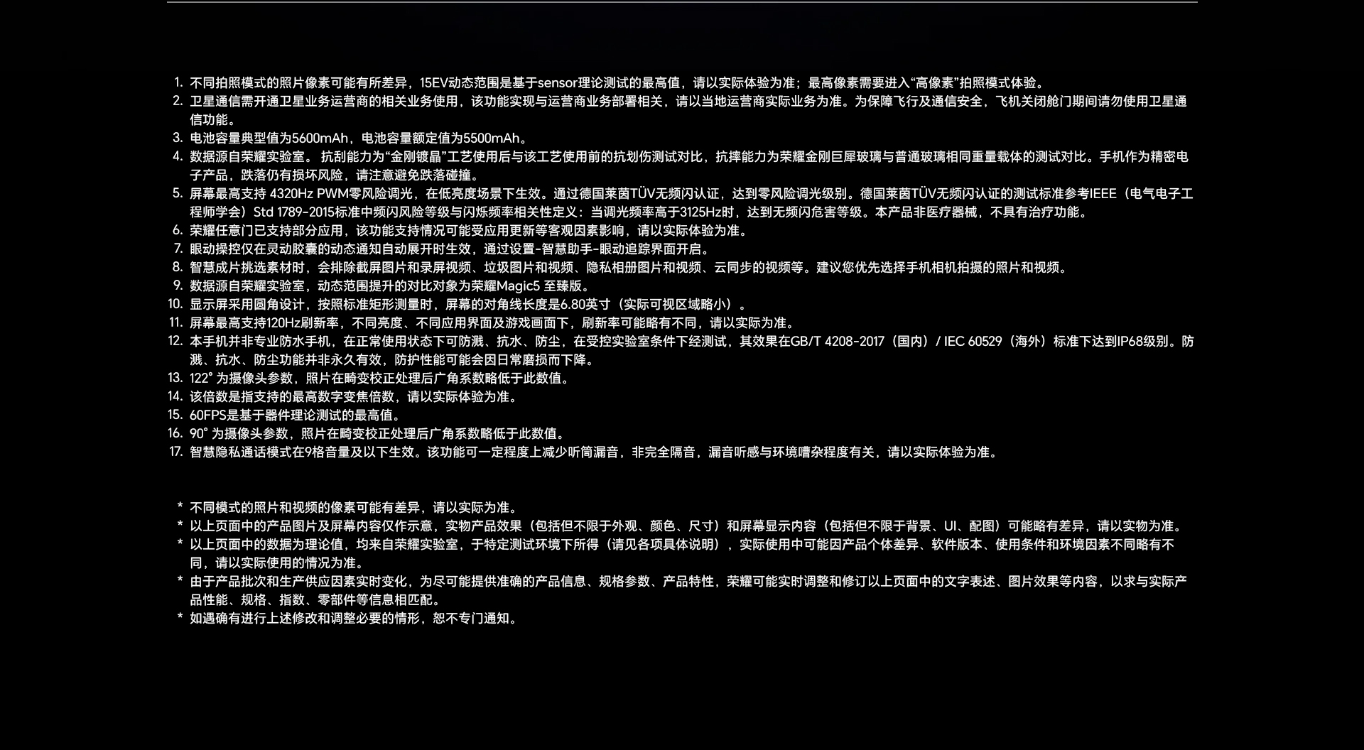 *以上页面中的数据为理论值,均来自荣耀内部实验室,于特定测试环境下所得(请见各项具体说明),实际使用中可能因产品个体差异、软件版本、使用条件和环境因素不同略有不同,请以实际使用的情况为准。
