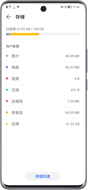 - 查看方法:进入手机/平板设置,搜索存储,查看可用空间和剩余空间。如果剩余空间比较少,建议打开系统管家,选择清理加速,将一些不用的文件或应用进行清理。