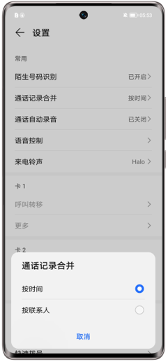 - 可能是您设置过按联系人合并通话记录,导致相同号码的通话记录被合并了。
