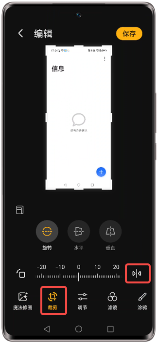 - 您也可以进入图库中,查看对应的图片,点击编辑/AI编辑 > 裁剪 > 坐标轴右侧镜像图标来更换图片的左右方向。