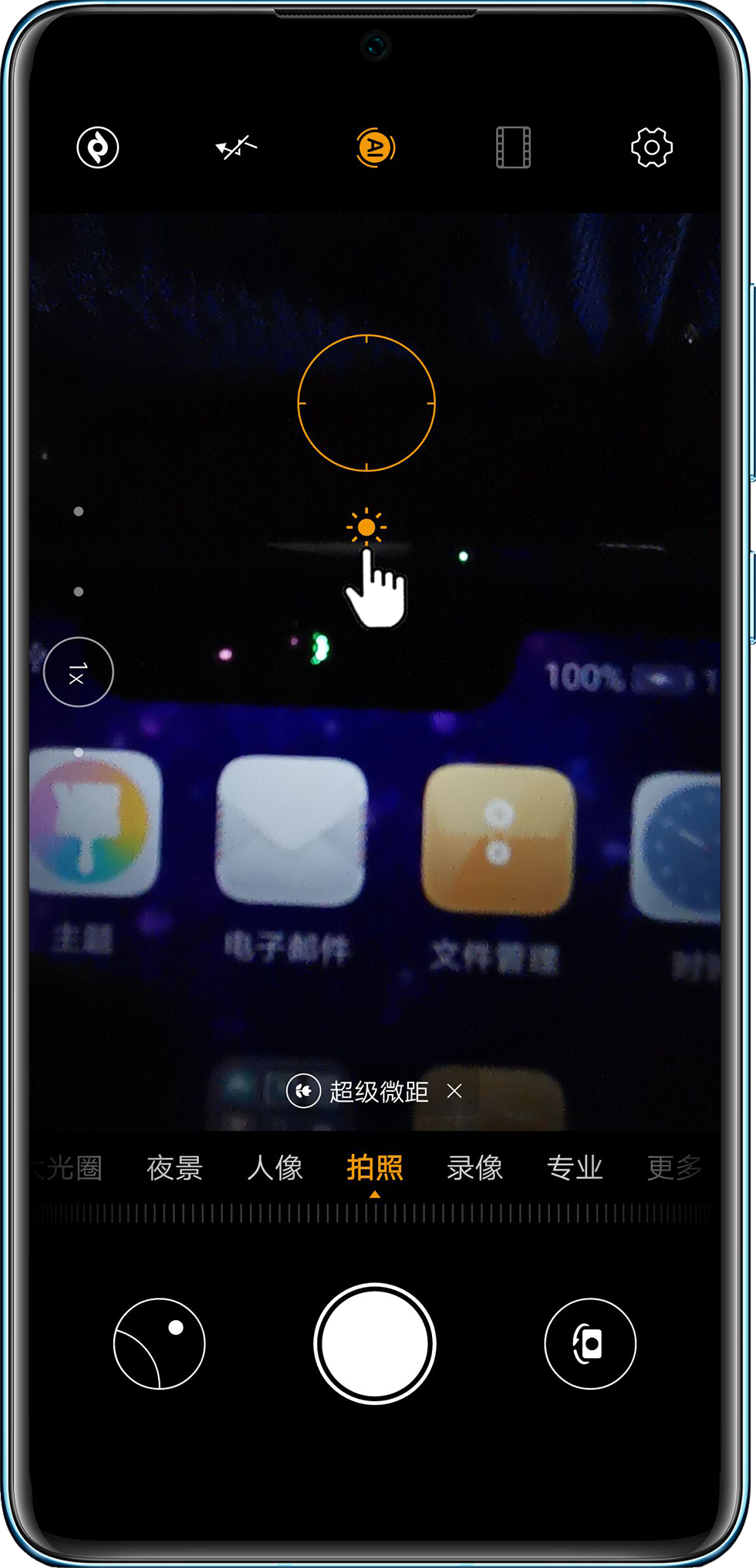 - 拍照界面点击对焦后,上下拖动对焦框旁边的小太阳图标,可以调节整体亮度。
