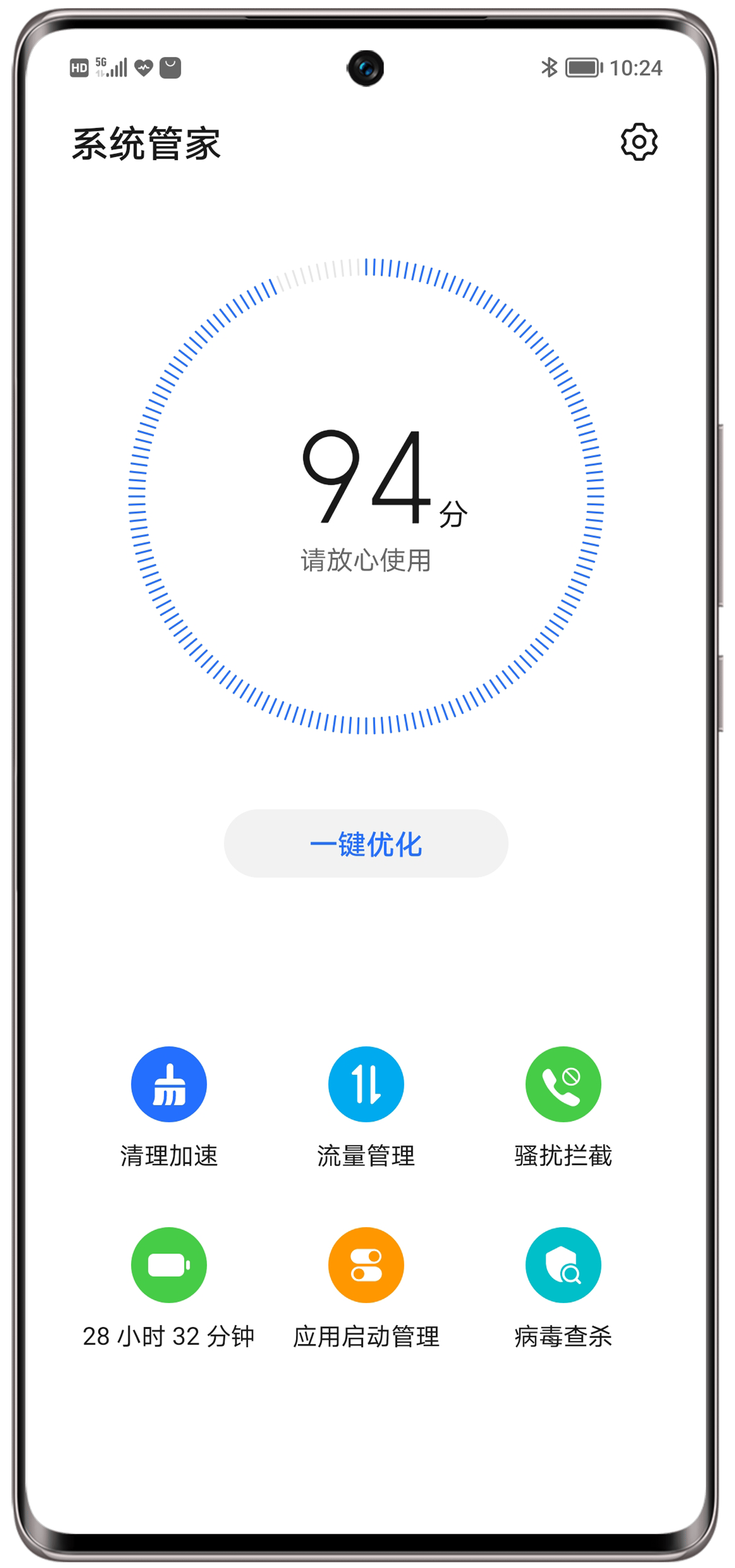 - 进入手机管家/系统管家界面,点击一键优化或立即优化,实现省电续航。