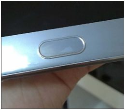 手机指纹按键的表面有与周边颜色不同的白色痕迹。