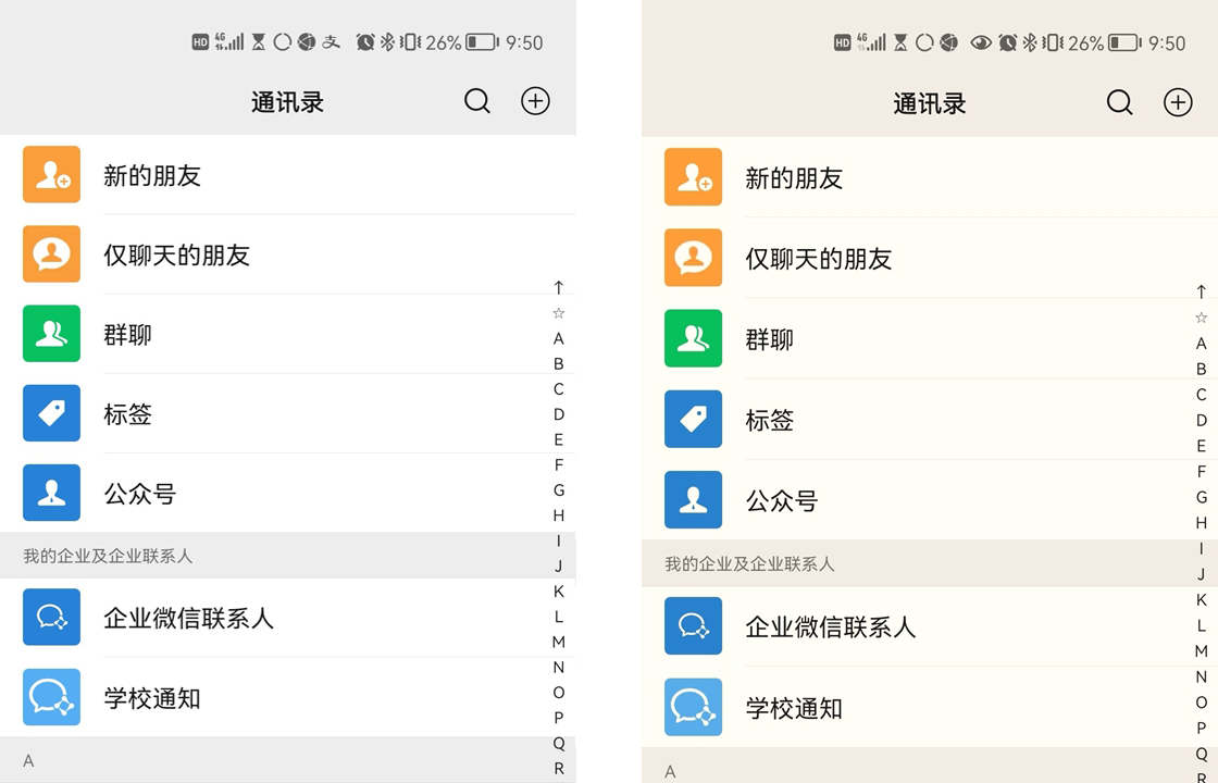 开启护眼模式后手机/平板会根据环境光亮度的变化,自动调节屏幕色温。当环境光发生频繁的变化时,手机/平板检测到环境光发生变化,会出现屏幕显示发黄和发白的变化,比如在室内大厅或偏暗的环境中,频繁改变手机/平板的角度时会出现这样的现象。