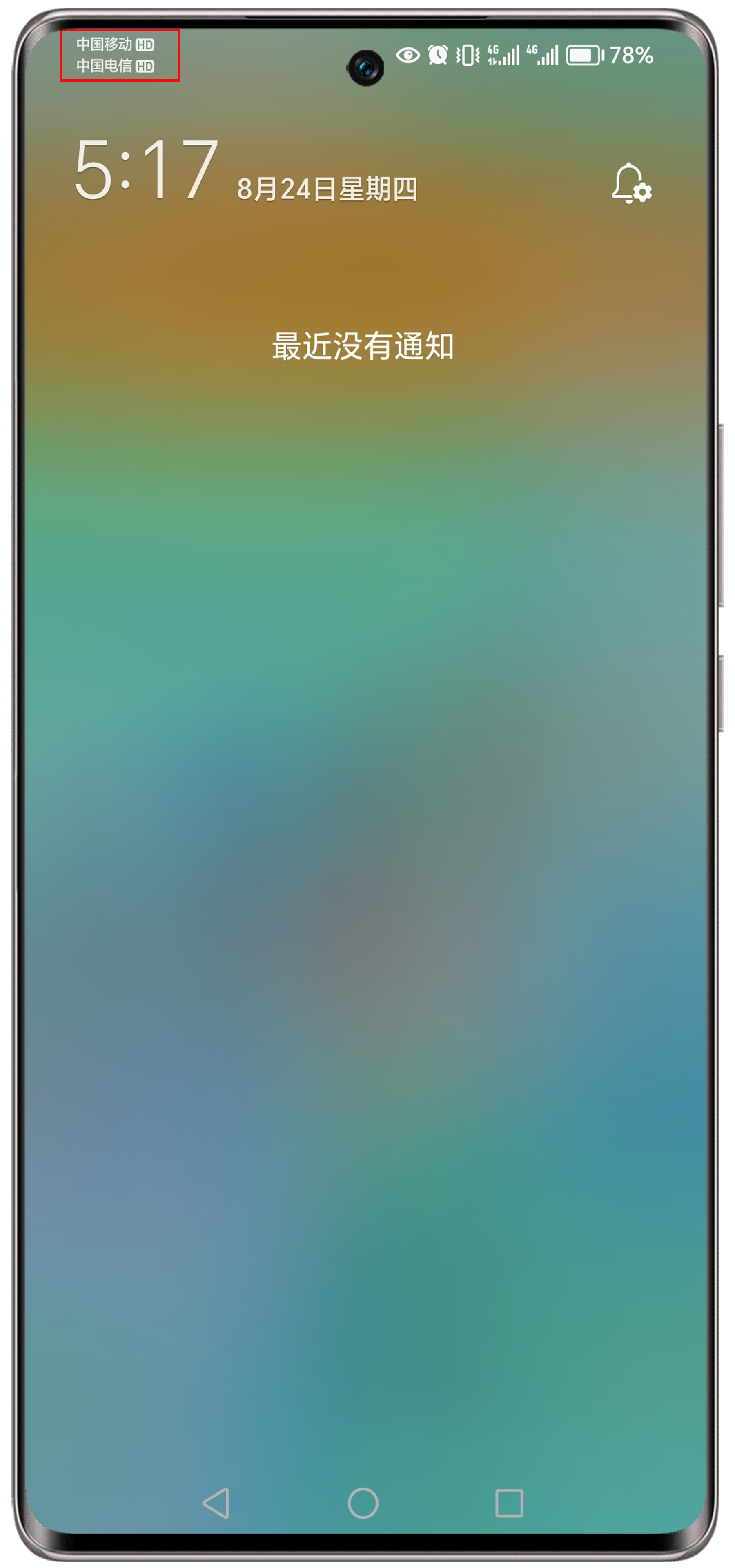请您下拉状态栏查看是否有HD图标:(有的系统版本显示在状态栏右上角,有的显示的左上角)