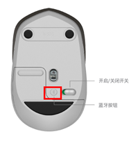开启开关后,长按蓝牙按钮,鼠标指示灯开始快速闪烁