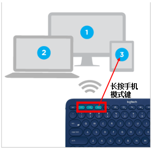 开机后,按下并按住“蓝牙模式”的手机/平板模式按钮,直到状态指示灯开始闪烁,在接下来的三分钟内,键盘会处于可发现模式。