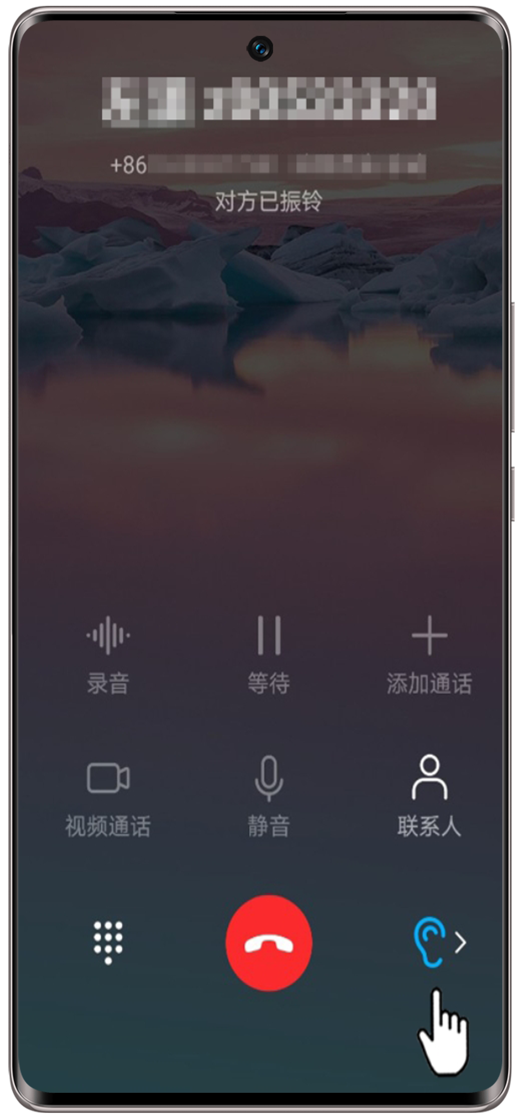 - 如果手机和蓝牙耳机/音箱/车载为连接状态,拨出或接听电话后,查看手机通话页面,右下角通话模式自动默认为,显示蓝牙符号。如需使用手机听筒通话,请手动选择,显示耳朵符号,此时可通过手机听筒进行通话。