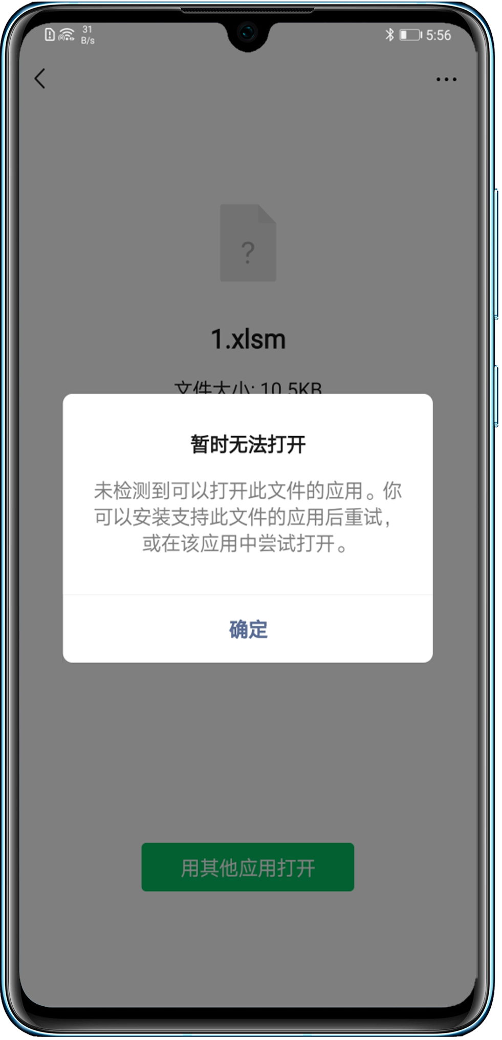 - .xlsm文件比较特殊,大多数Android软件都不能正确识别和打开;如果您需要打开.xlsm文件,请进入文件管理 > 分类/浏览 > 文档中长按需要打开的文档,在更多中点击打开方式,使用WPS Office打开。