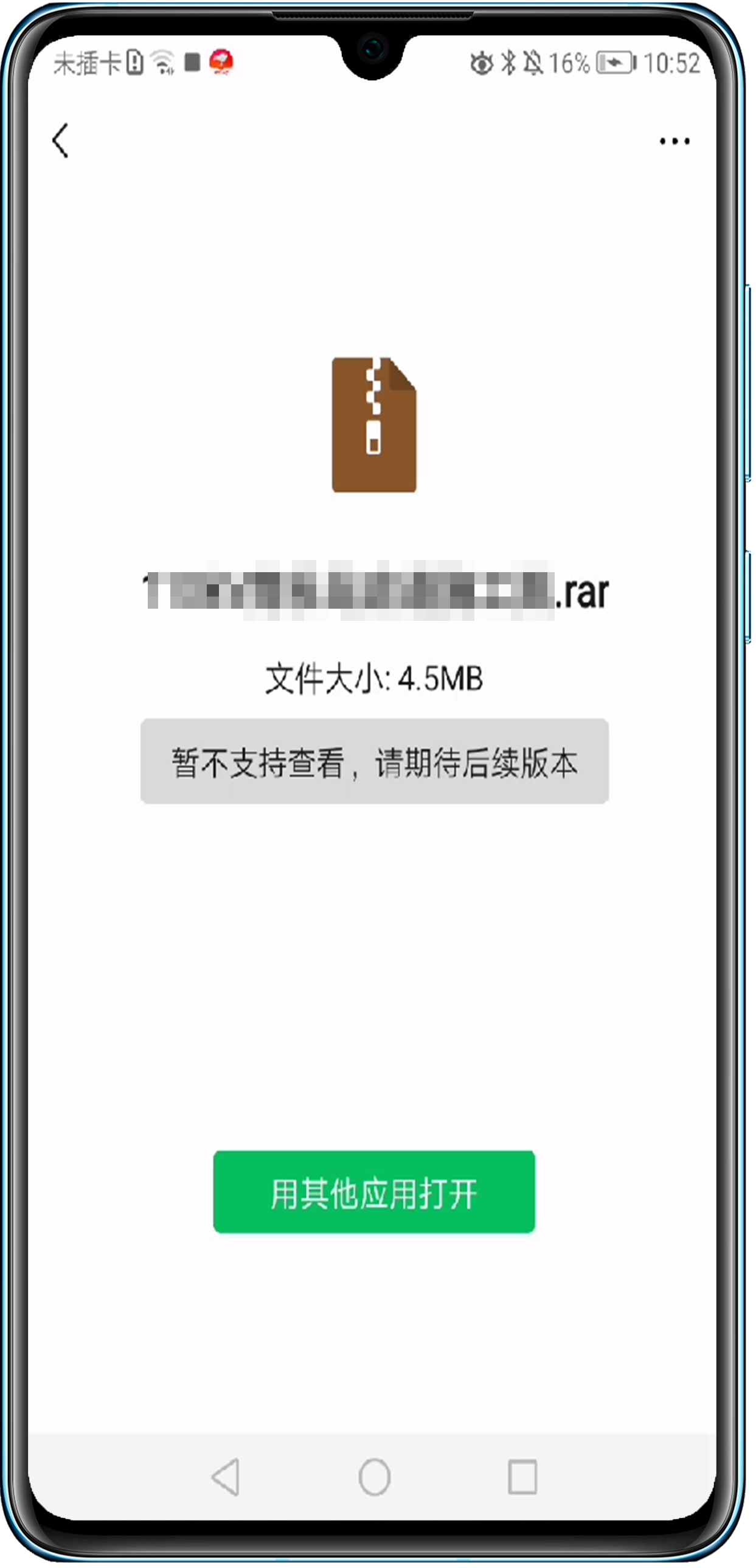 - 在微信、QQ聊天界面无法直接打开文件(Word、PDF、Excel、TIFF压缩文件等),点击无反应、打开失败或提示“暂不支持查看,请期待后续版本”。