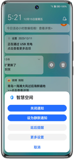 部分系统通知和前台运行应用的通知不能被关闭或延后提醒。