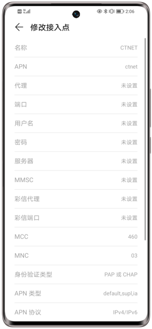 运营商预置的APN选项置灰无法修改