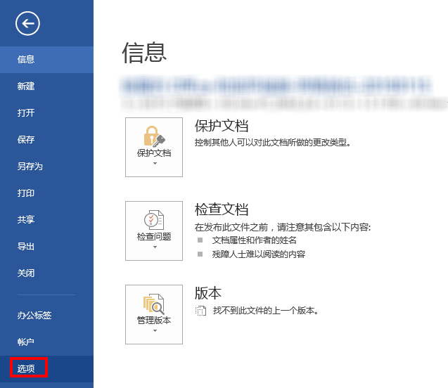 - 在您的 Office 激活后,打开 Office 任一应用,如:Word,点击“文件 > 选项”。