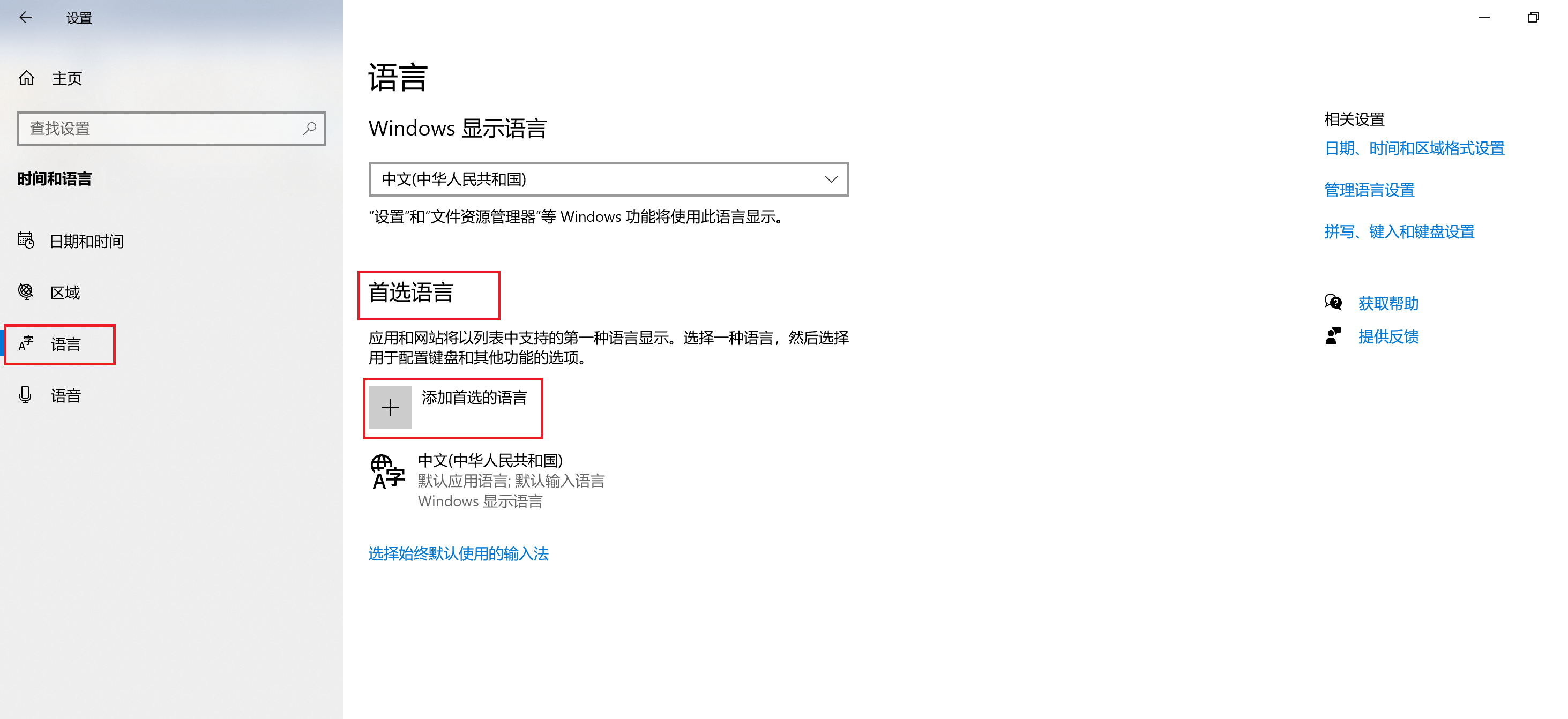 - 在“首选语言”下面选择“添加首选语言”,然后在搜索框输入您需要的语言,例如“英语”,选择并下载该语言包。