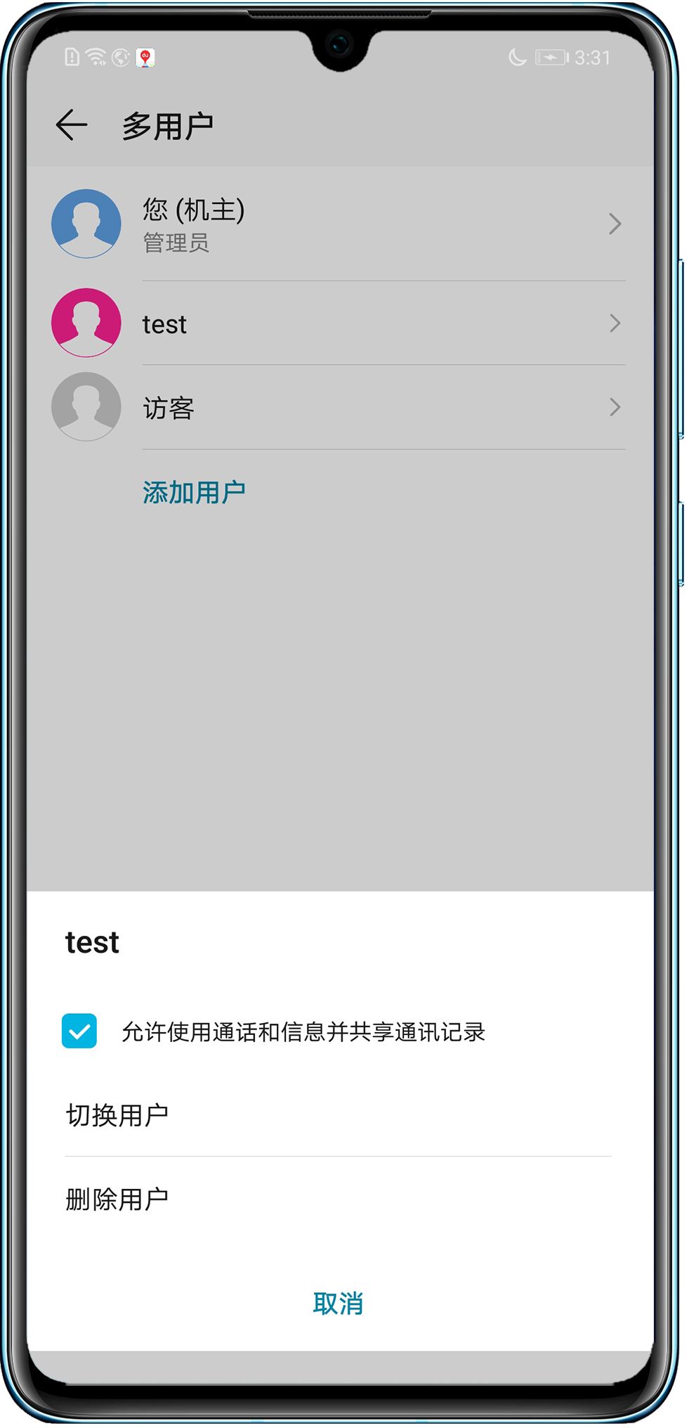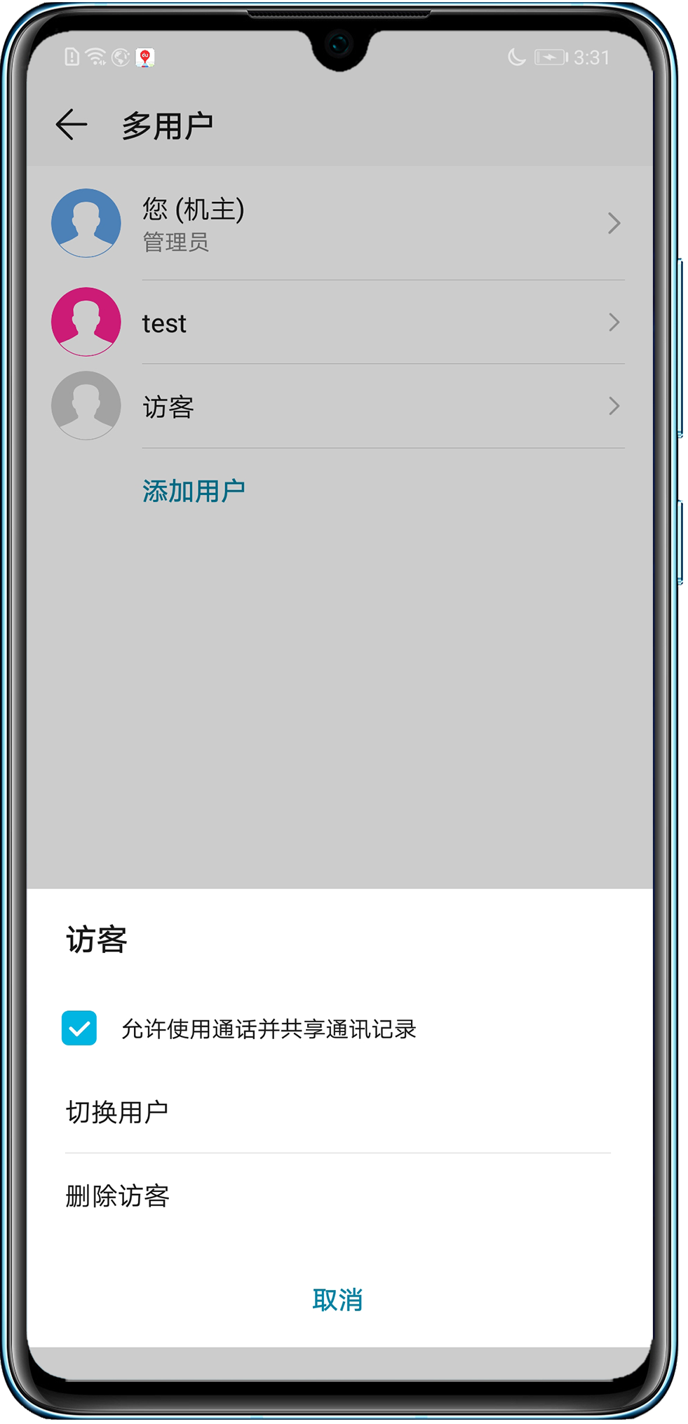 切换到访客模式或者子用户时,主用户保存的联系人不显示。