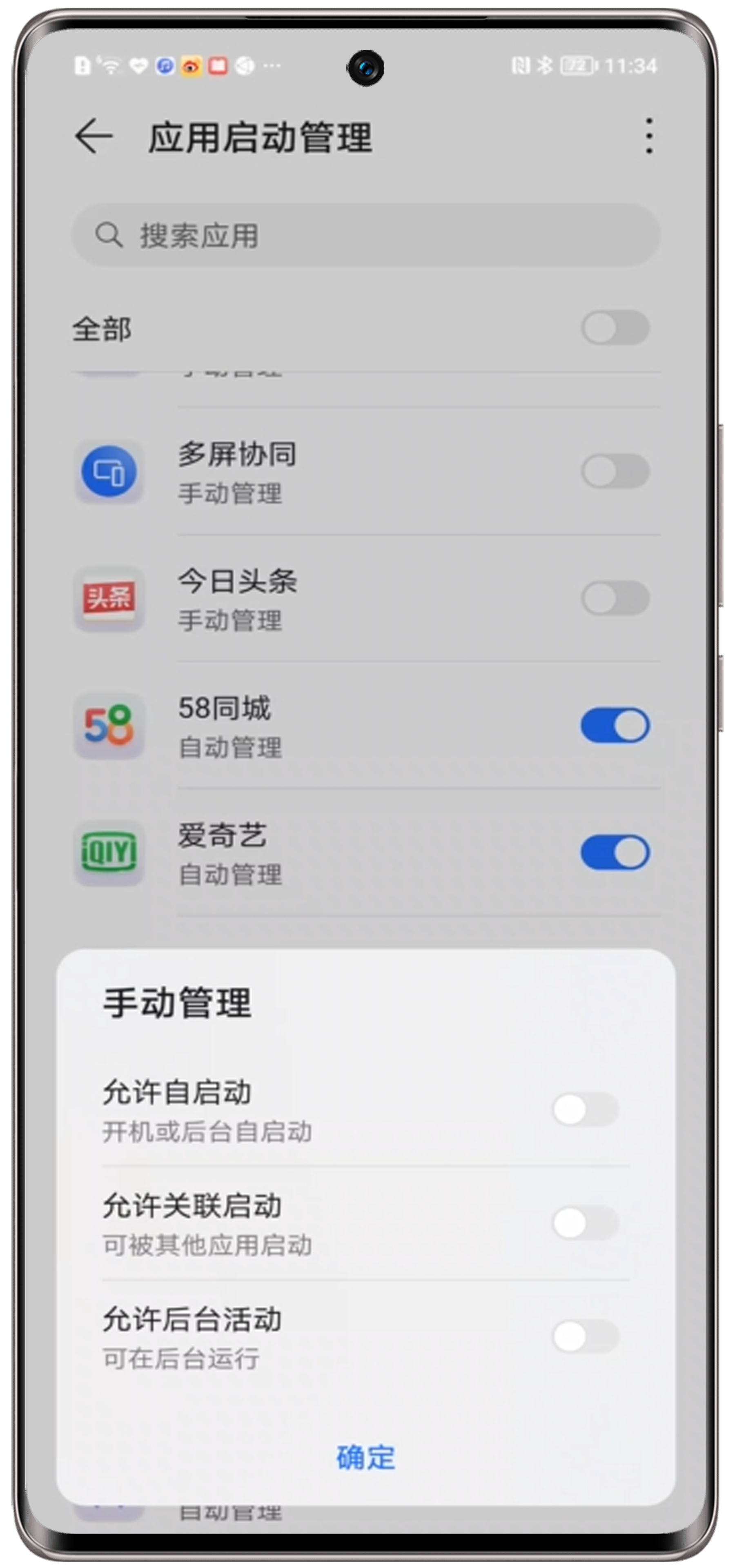 - 关闭应用自启动:进入设置>应用>应用启动管理,找到应用,关闭右侧开关,关闭允许自启动、允许关联启动、允许后台活动开关。