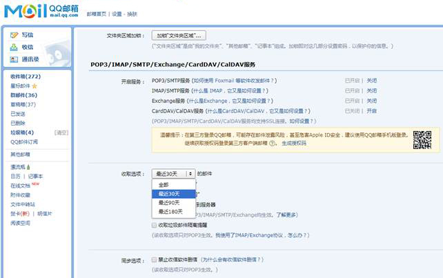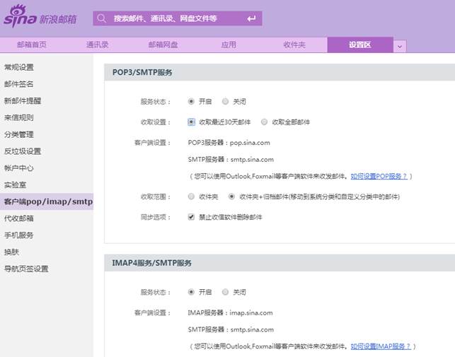 因此,在排除步骤1、2中的情况之后,您可以检查网页端的邮箱设置。如下图分别为QQ邮箱、网易163邮箱、新浪邮箱,支持收取邮件天数的情况的设置截图。