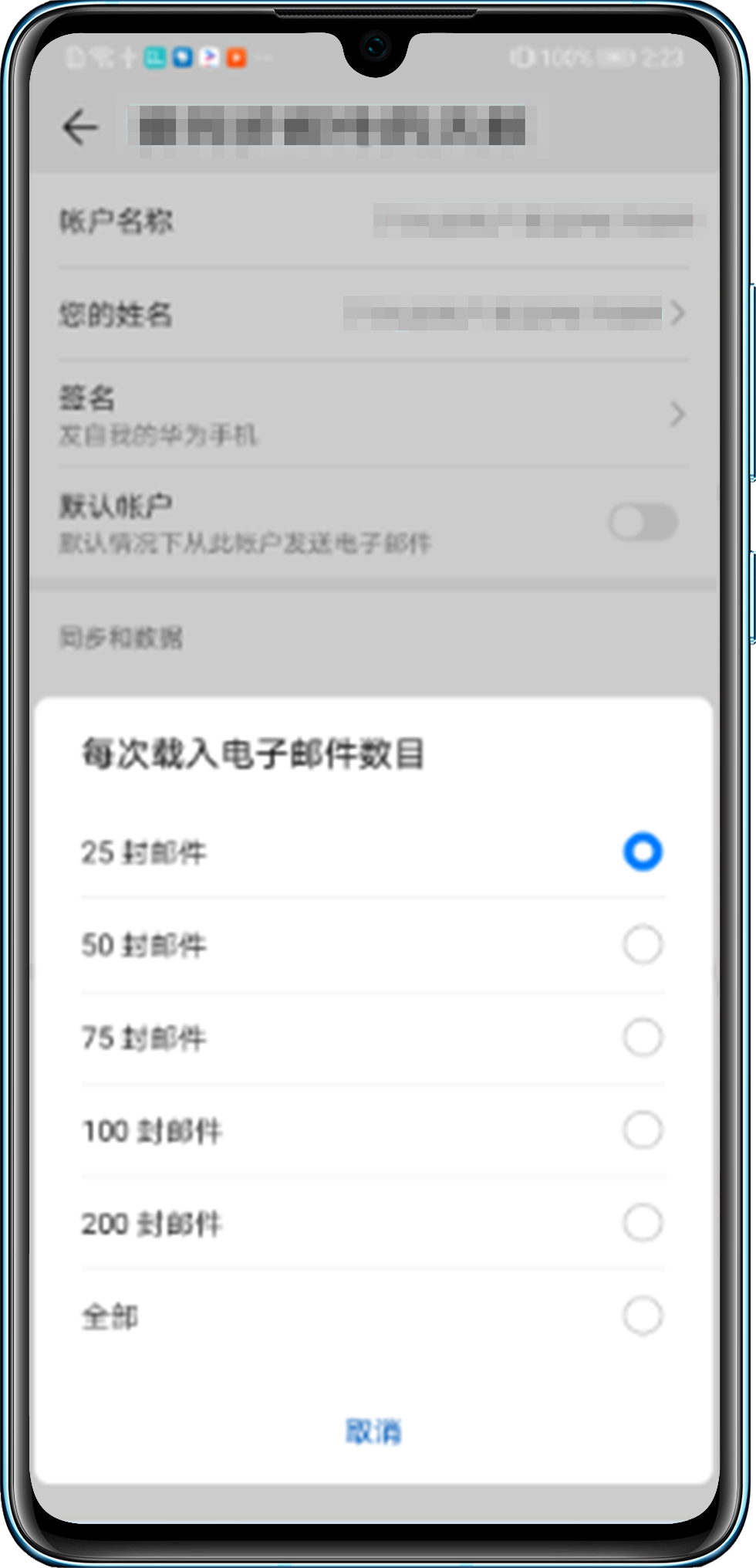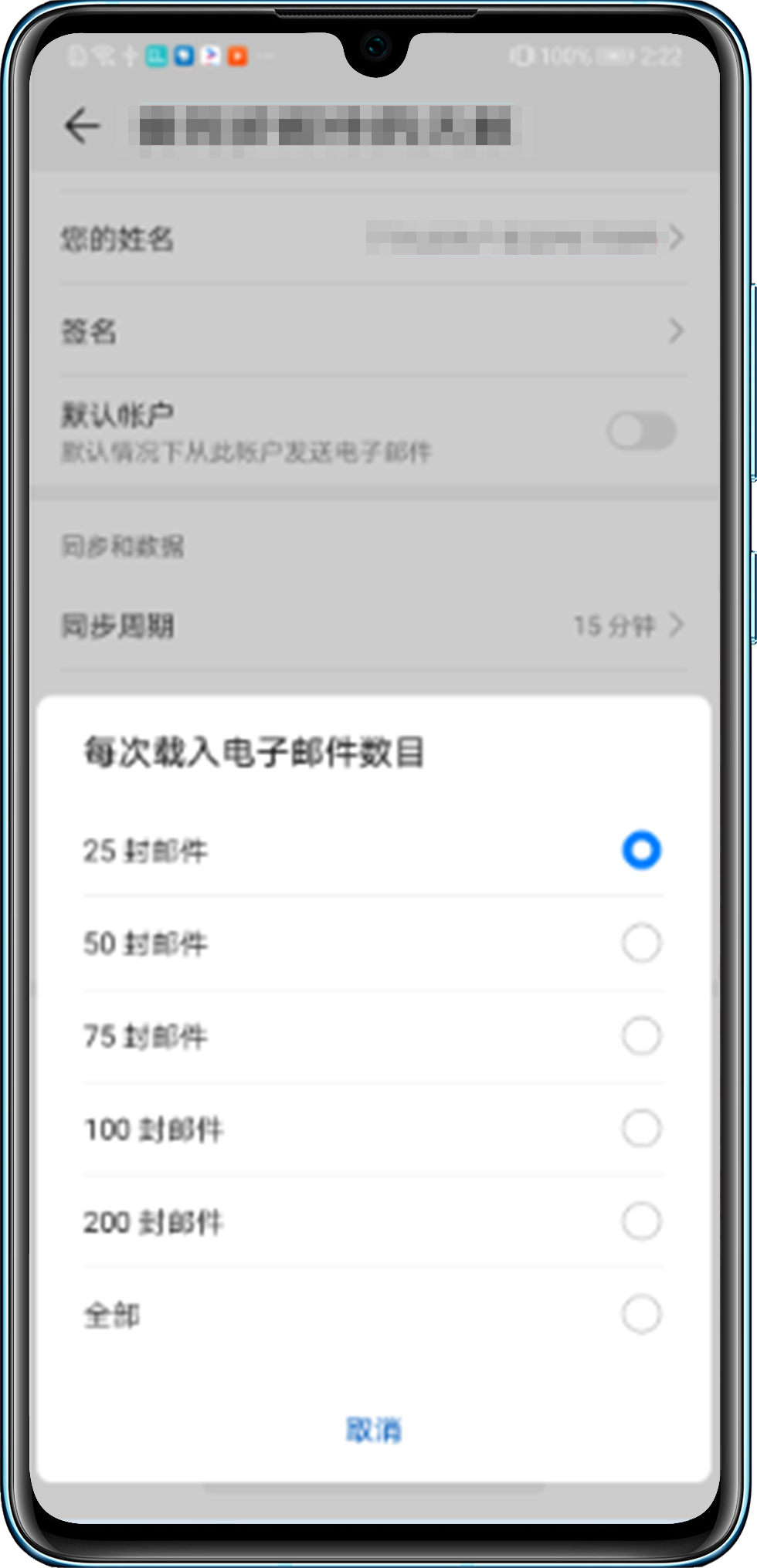 >设置->帐户查看每次载入电子邮件数目是否为全部。下图从左到右依次为Pop、Imap、Exchange协议邮箱的设置截图, Pop/Imap邮箱的每次载入电子邮件数目的默认设置为25封邮件,Exchange邮箱要同步邮件的天数 默认为最近1周。