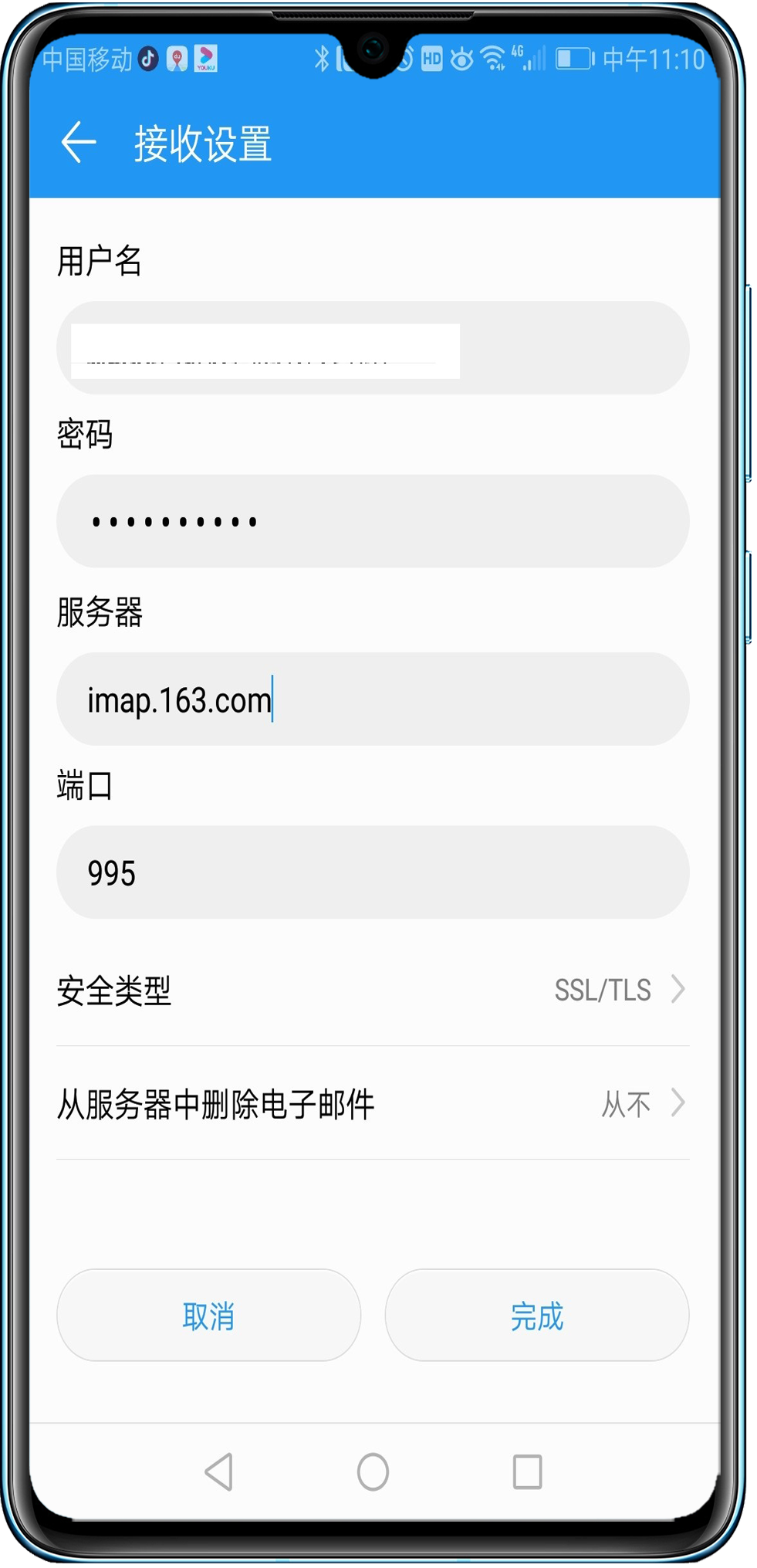手机登录邮件时使用不同的协议登录导致:POP3协议不支持客户端从服务端同步分类文件夹,IMAP协议支持。