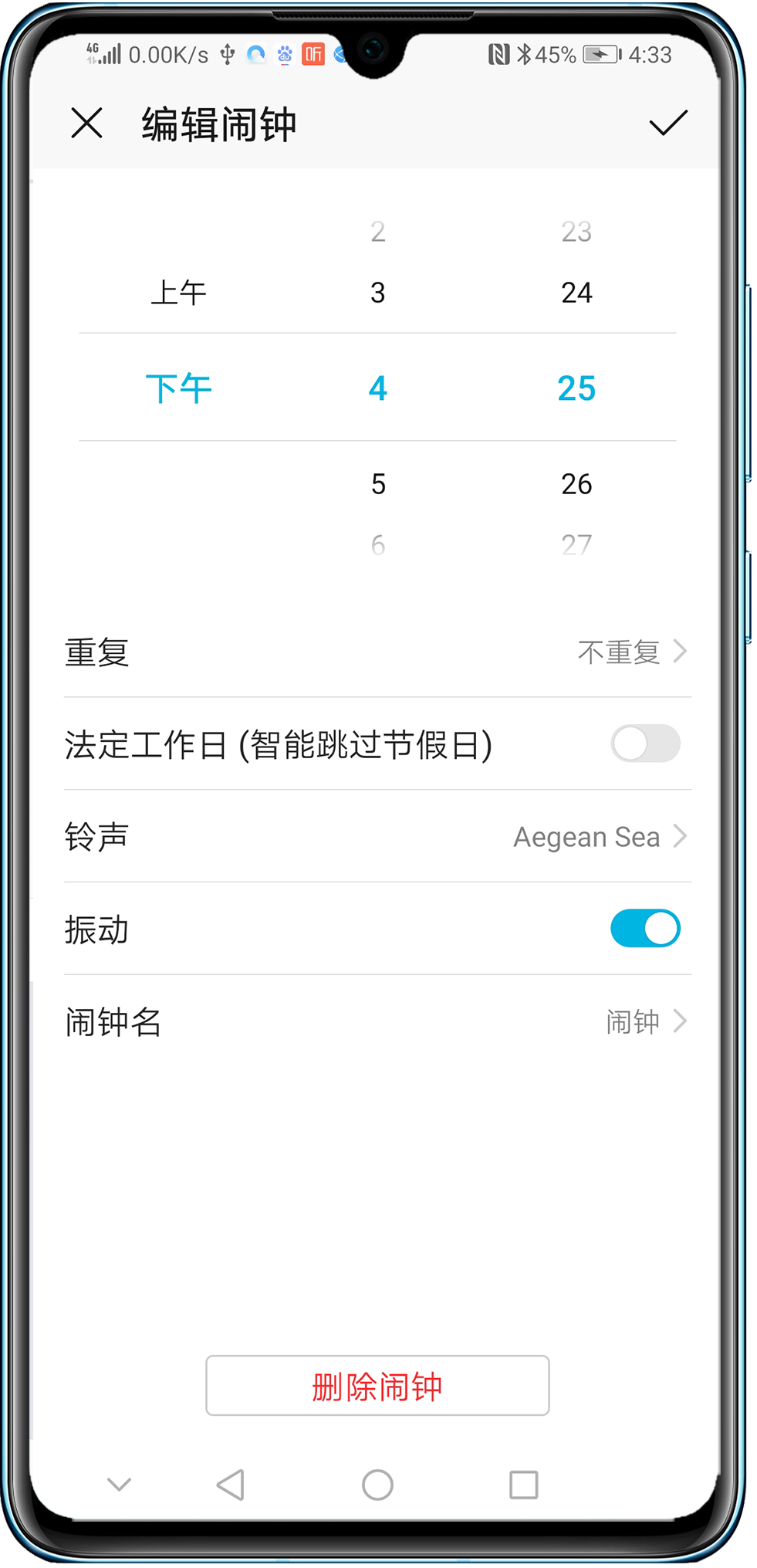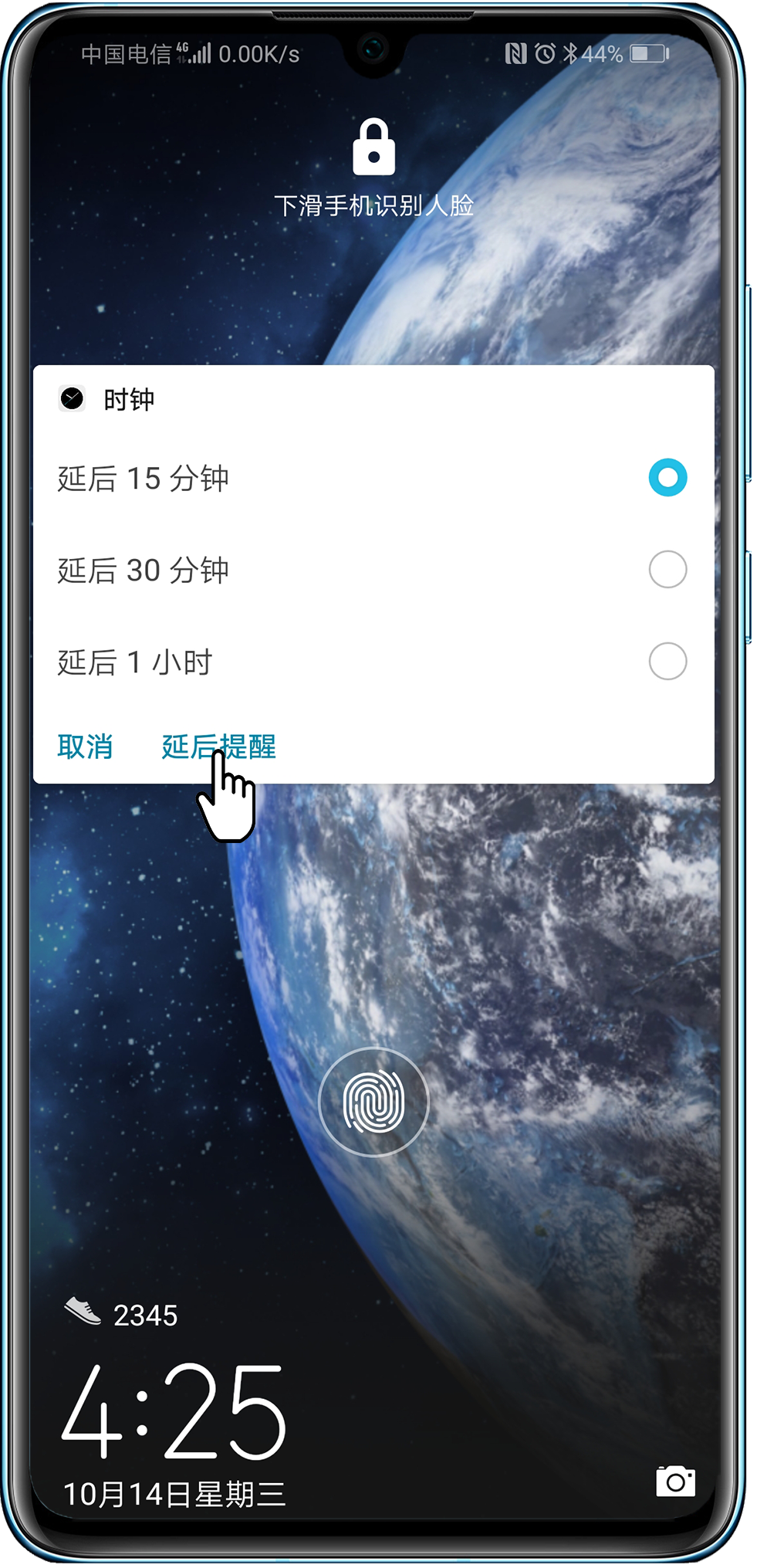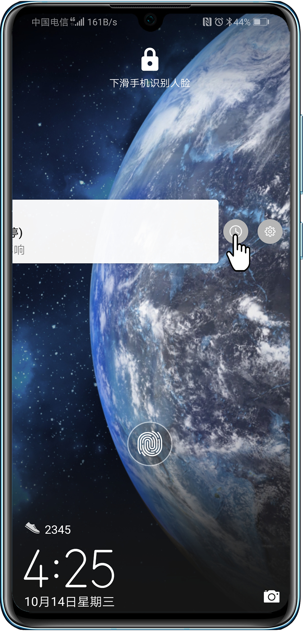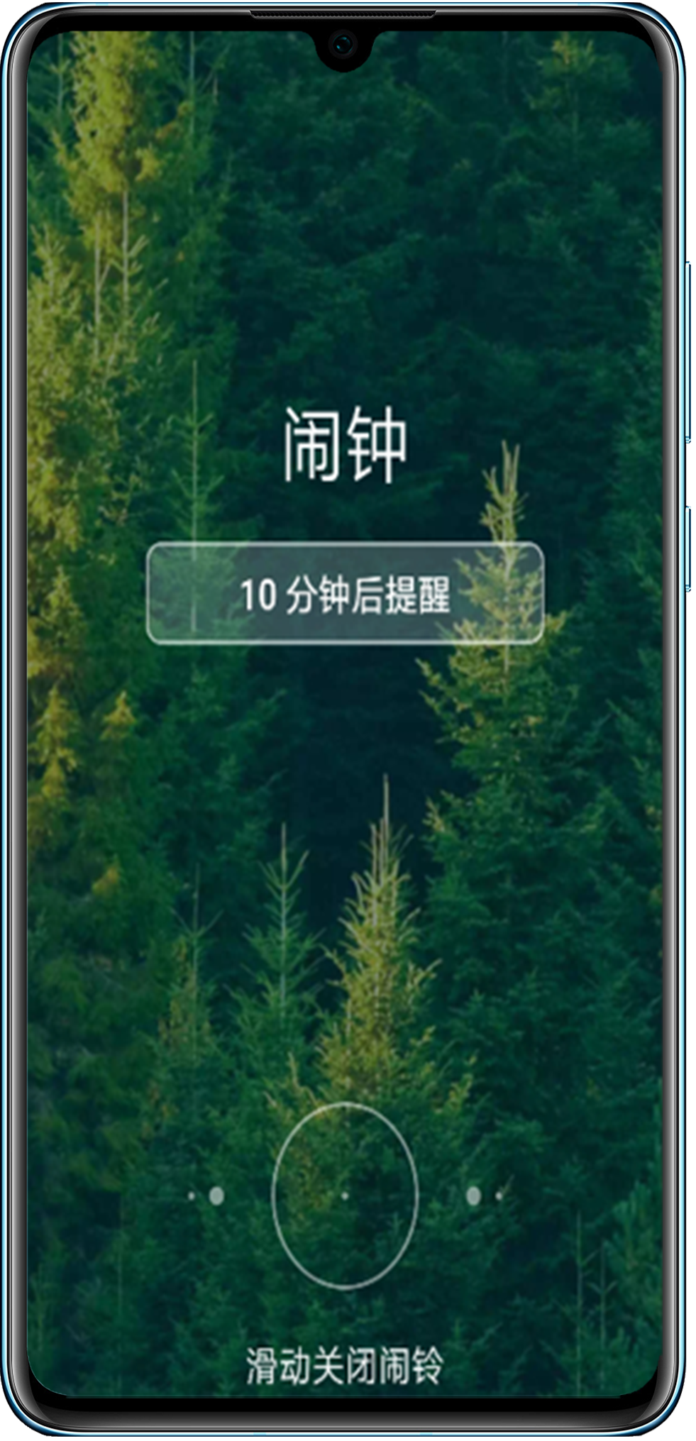 闹钟提醒时,按电源键进行熄屏(闹钟停止),再按下电源键进行打开,在锁屏界面左滑闹钟通知,选择延迟提醒后,再次响铃无通知界面,无法操作关闭。