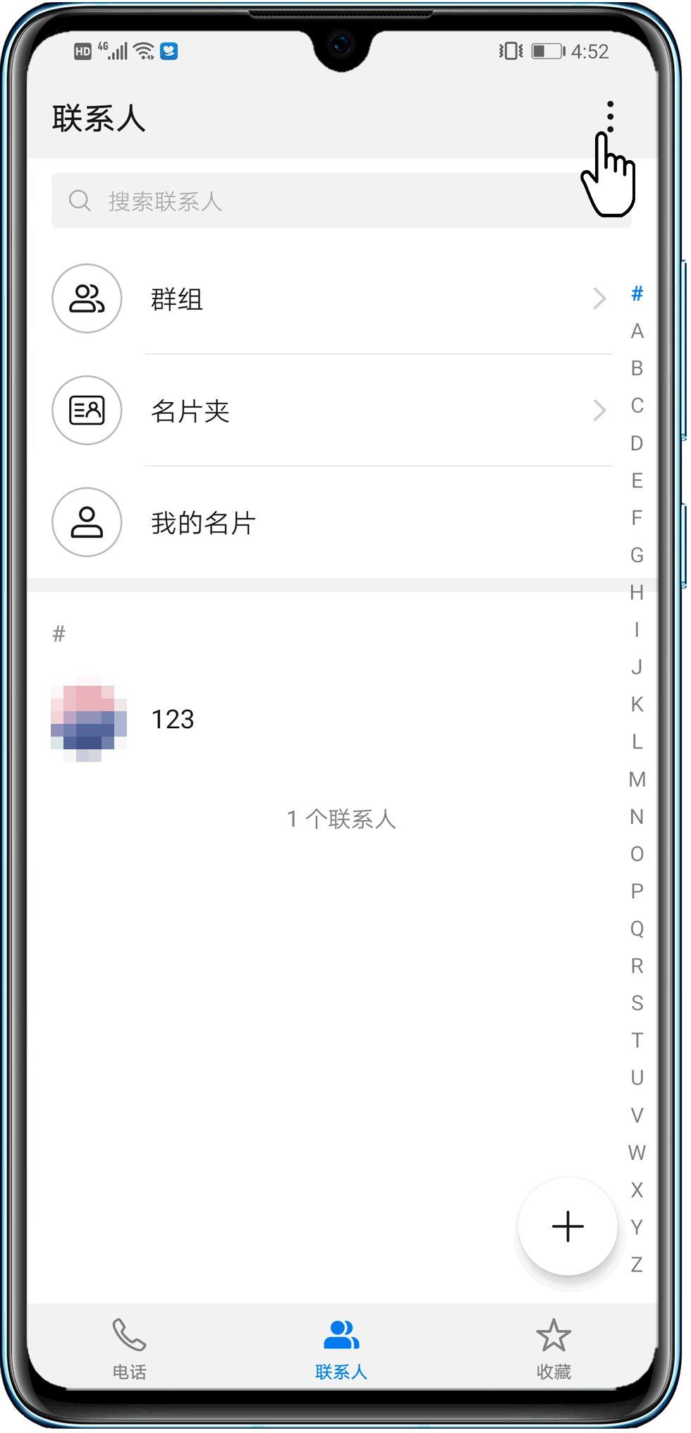 进入联系人,点击右上角三个点