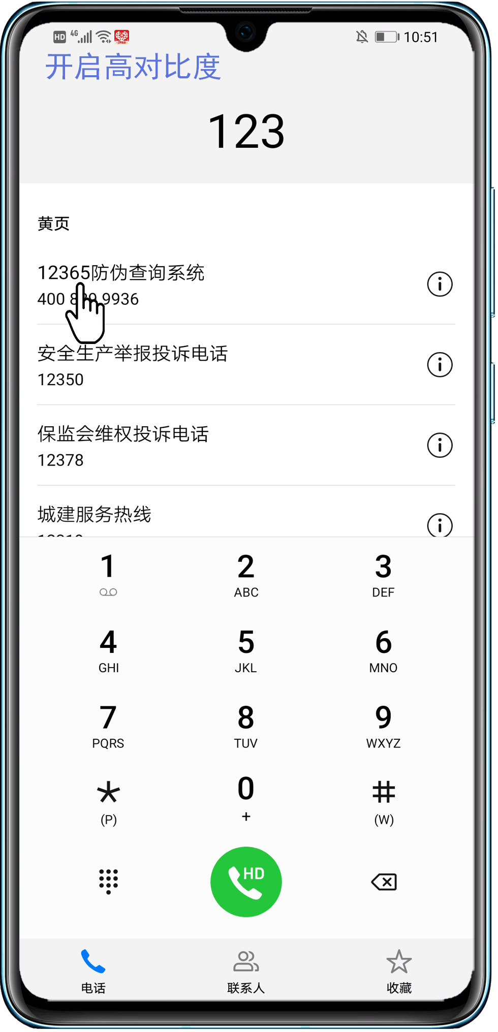 如果您的联系人搜索后不显现高亮,可能因为打开了高对比度文字开关。建议您打开设置,搜索进入“高对比度文字”,然后关闭此选项。