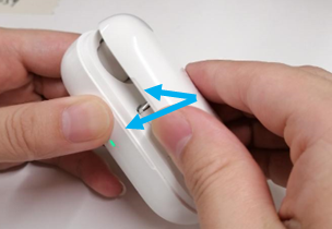 充电盒开盖时,请用双手手指压住凹槽扣手位置开盖,如图 1所示。