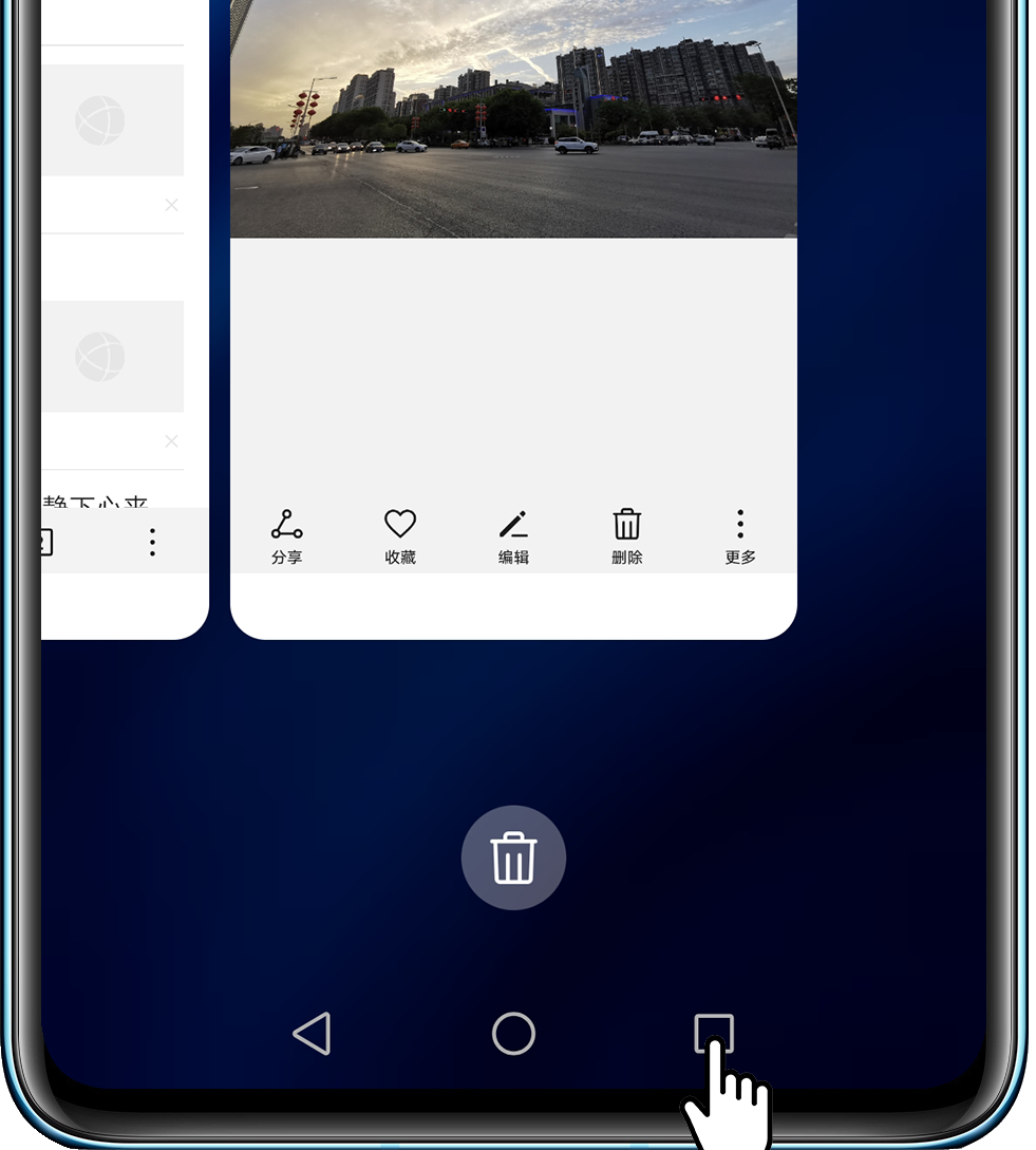 ,清理后台应用进程。手势导航:从手机底部上划至屏幕中央后,点击删除