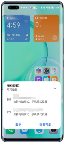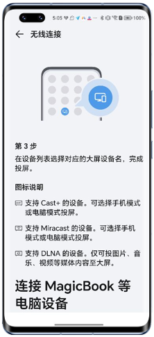 请您从手机/平板屏幕顶部右侧下滑出控制中心,打开无线投屏开关,查看投屏的设备列表,如果显示的图标为