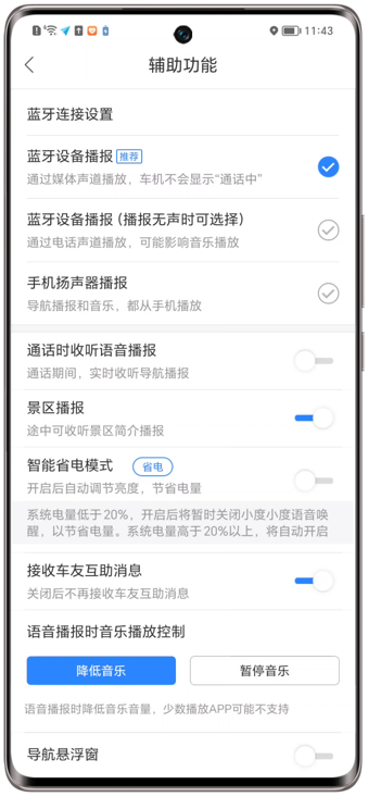 百度地图未选择蓝牙设备播报功能。