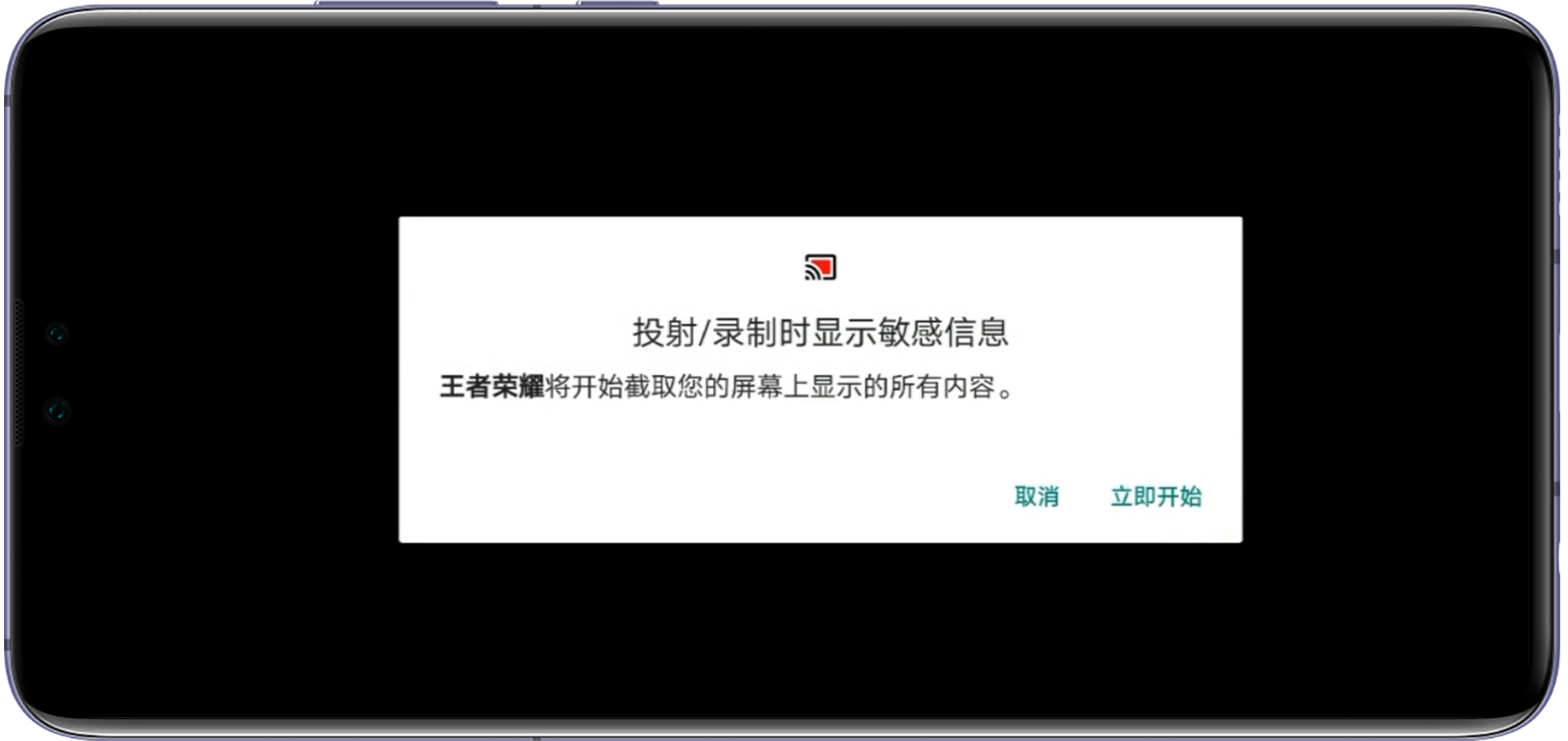 | 王者荣耀等三方应用中提示投射/录制时显示敏感信息 |
