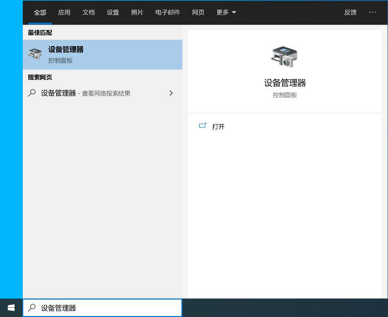 在任务栏的搜索框中输入“设备管理器”并打开。