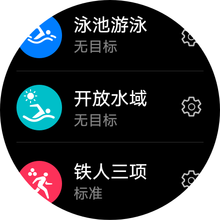 按一下手表下键,进入锻炼应用菜单界面。点击