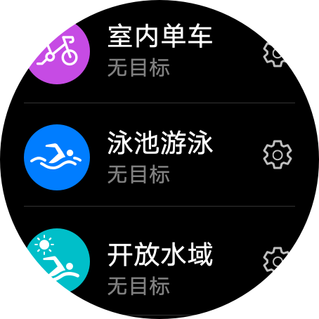按一下手表下键,进入锻炼应用菜单界面。点击