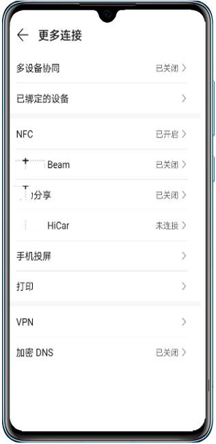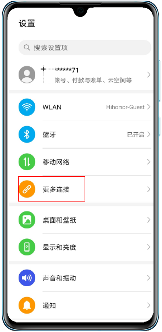 打开手机设置,点击更多连接。