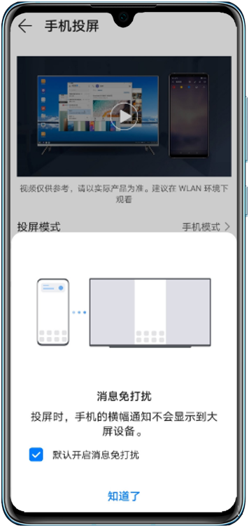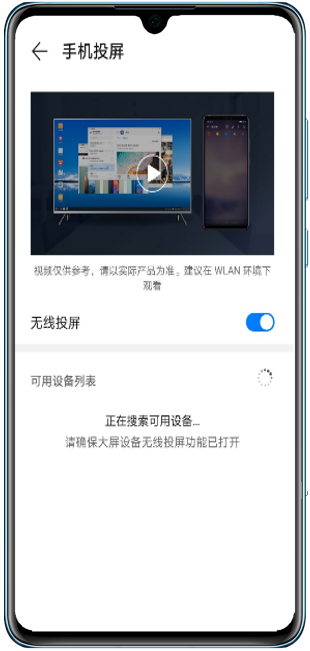 点击手机投屏,打开无线投屏按钮。