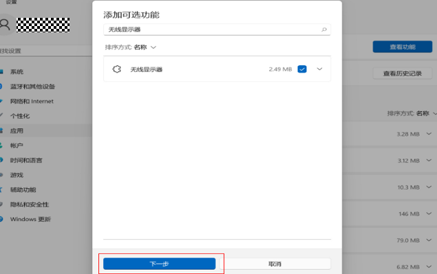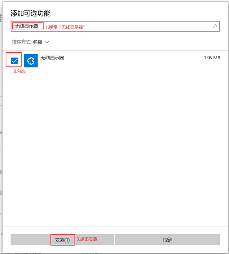 搜索无线显示器,勾选之后点击安装/下一步,安装成功之后不需要重启计算机。