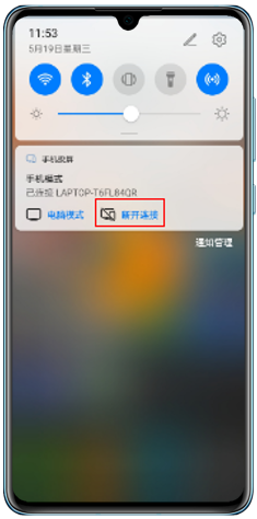 - 如果您需要断开连接,下拉手机导航栏,点击断开连接即可。