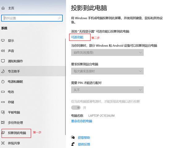 如何使用计算机“投影到此电脑”功能 将手机无线投屏到电脑