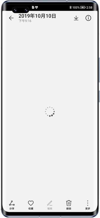 开启了图库云同步的手机/平板,图库中有的图片/视频缩略图显示为白块,点击图片/视频跳转至大图界面(大图界面右上角有下载按钮),图片/视频一直转圈无法正常显示。如下图: