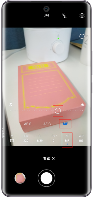 - 将对焦选项(AF)调节到手动对焦状态(MF),并且拖动滑动条调整对焦位置后再拍摄。