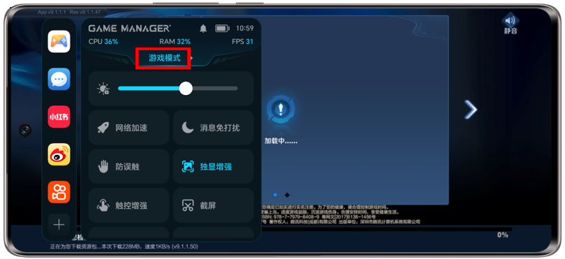 可以尝试在游戏界面左上角右滑,进入游戏管家,切换到游戏模式。