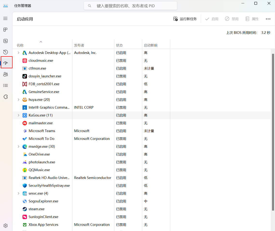 四、禁用非必须的开机启动软件