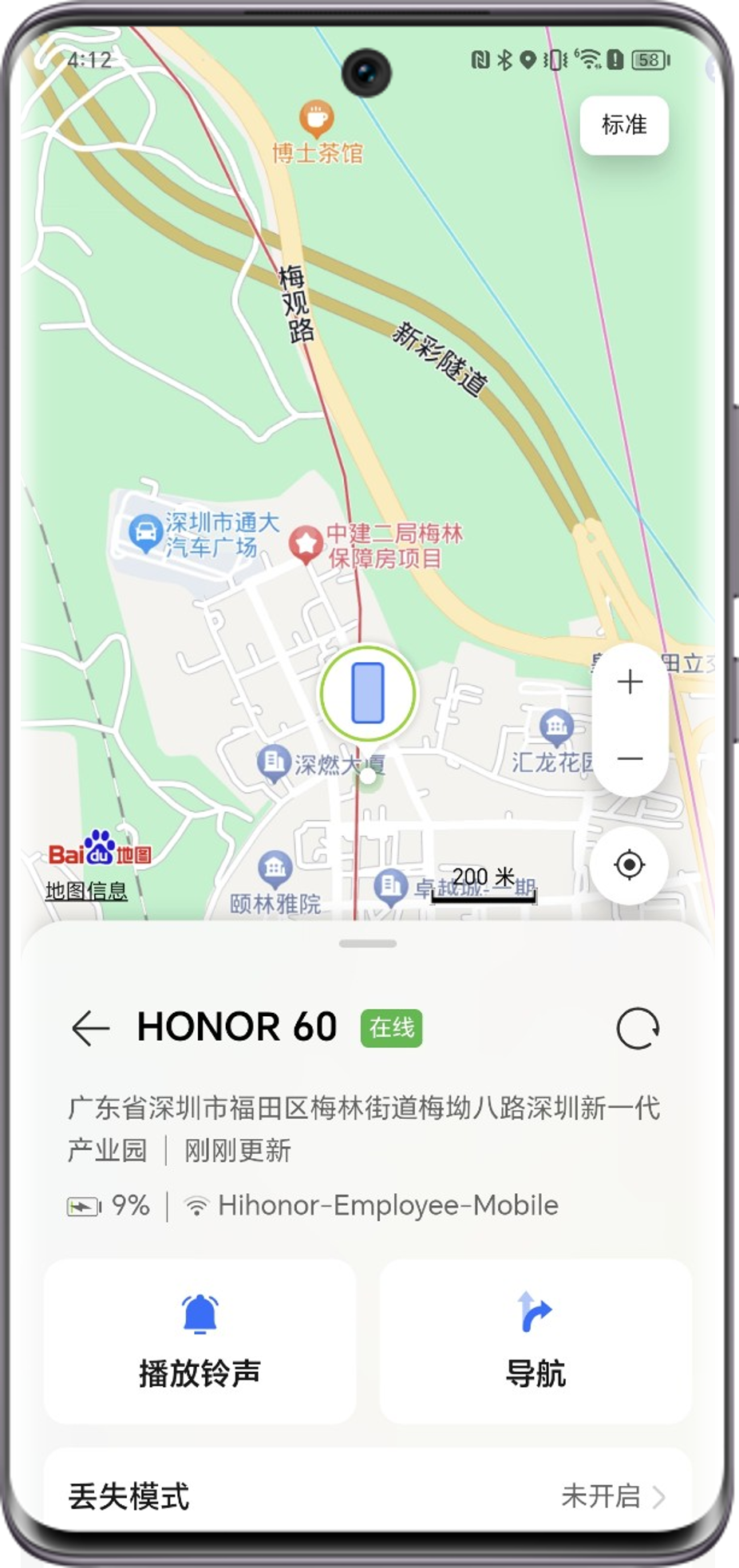 * 铃声为穿透力较强的警报音,时间约为2分钟左右,被定位设备在屏幕解锁后可以主动关闭铃声。尽量避免远距离开启铃声,以免将电量耗尽或者被人为关机,导致无法定位。