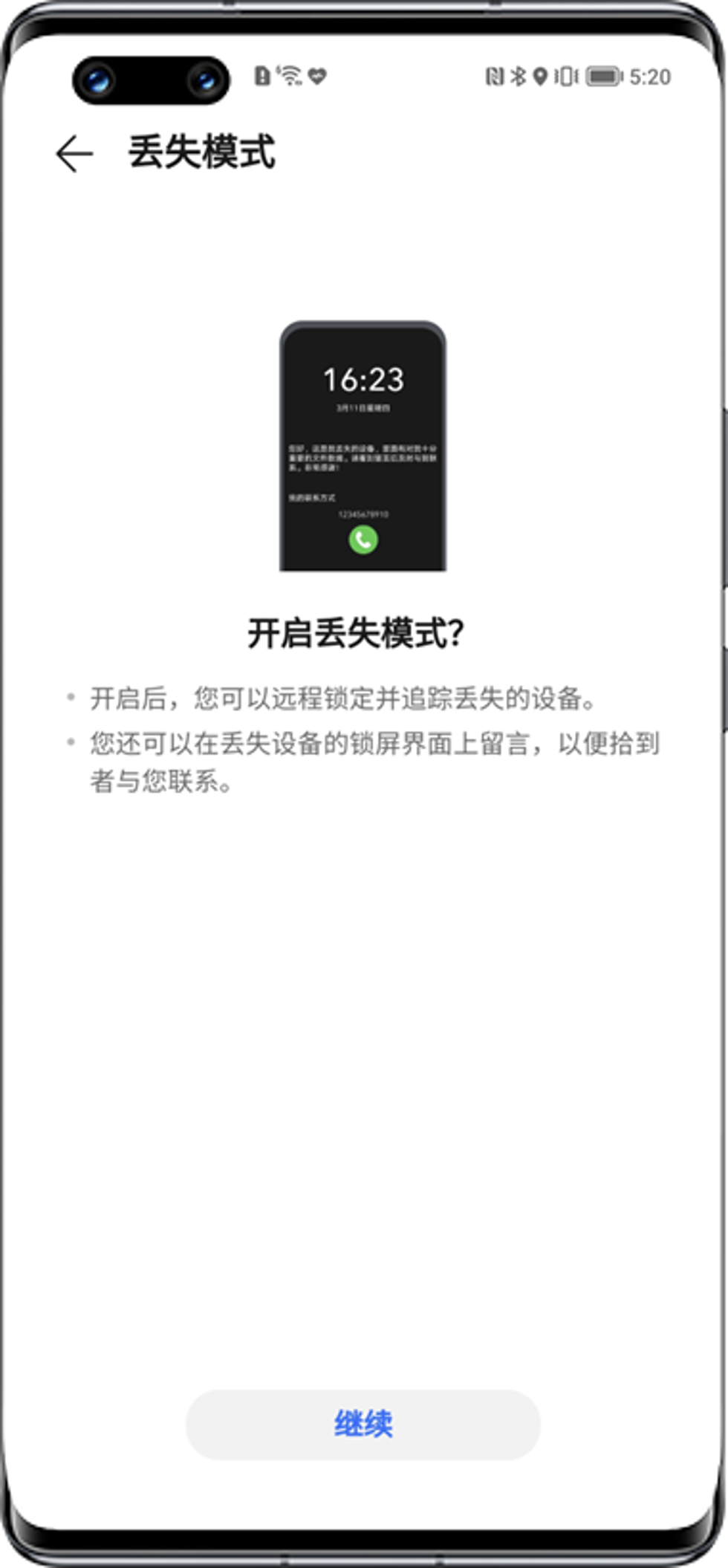 1) 远程锁定。通过开启丢失模式远程设定数字锁屏密码锁定遗失设备,然后导航前往;