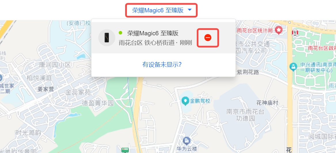 网页端:登录http://cloud.honor.com进入查找设备,点击如图所示红色减号,进行移除设备操作。