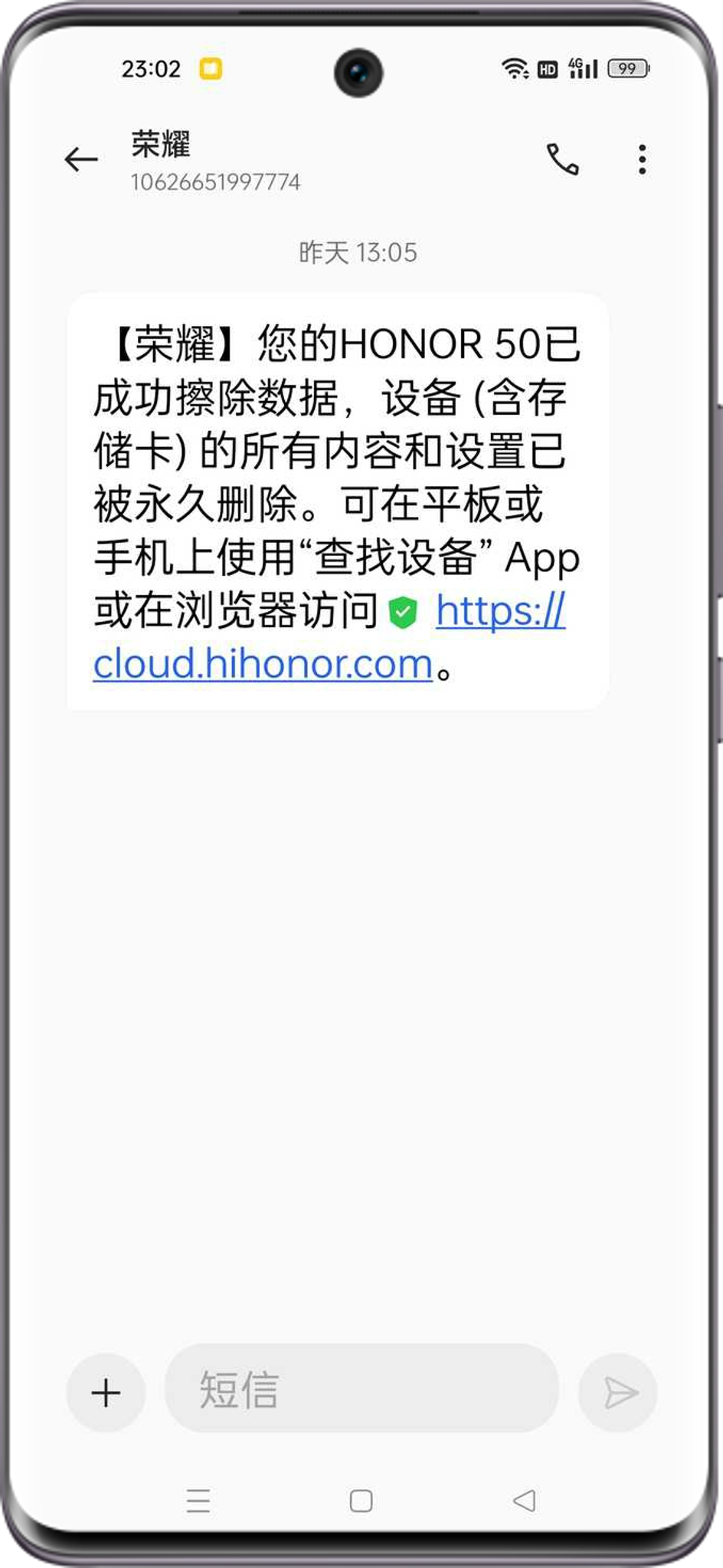 注:擦除数据时需要输入荣耀账号对应的密码进行二次验证,擦除数据后云端数据不会被删除。擦除成功后不支持修改激活界面留的文字信息。
