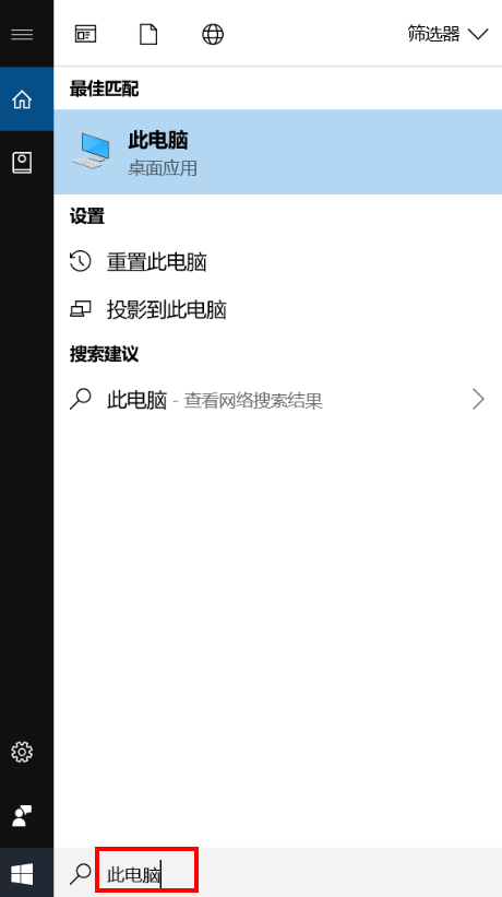在任务栏搜索框中输入“此电脑”并打开。