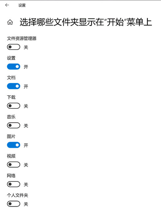 如何在开始菜单中显示设置、文档或图片等文件夹