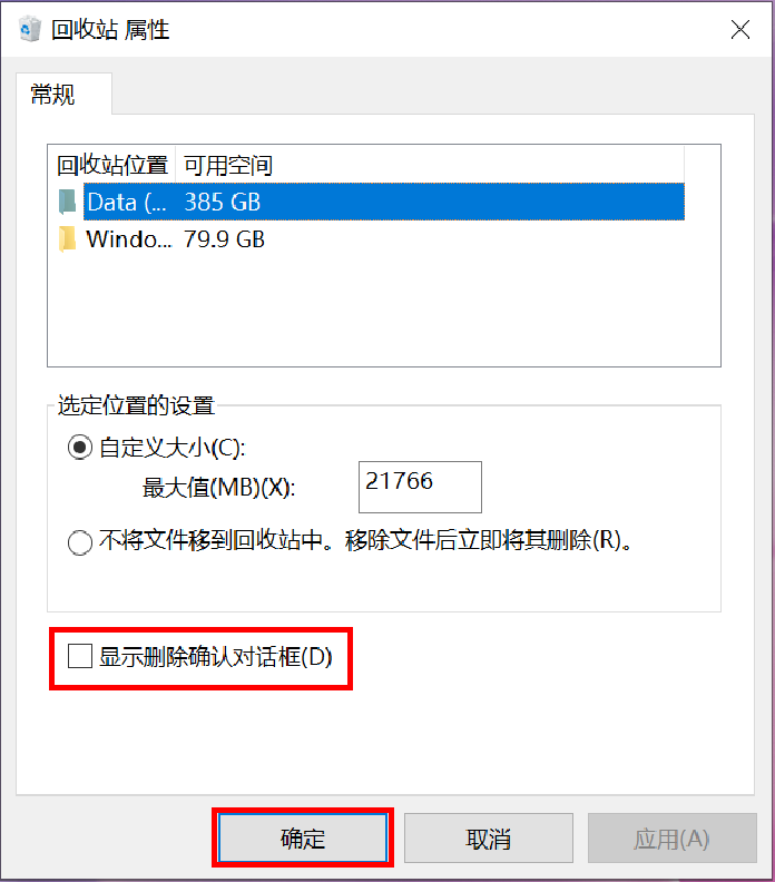 若您不需要此提示框,可按如下操作去除(提示:设置完成后,再次删除文件的时候系统不会再提示,因此在删除数据之前请多次确认,以免误删文件,造成数据丢失):